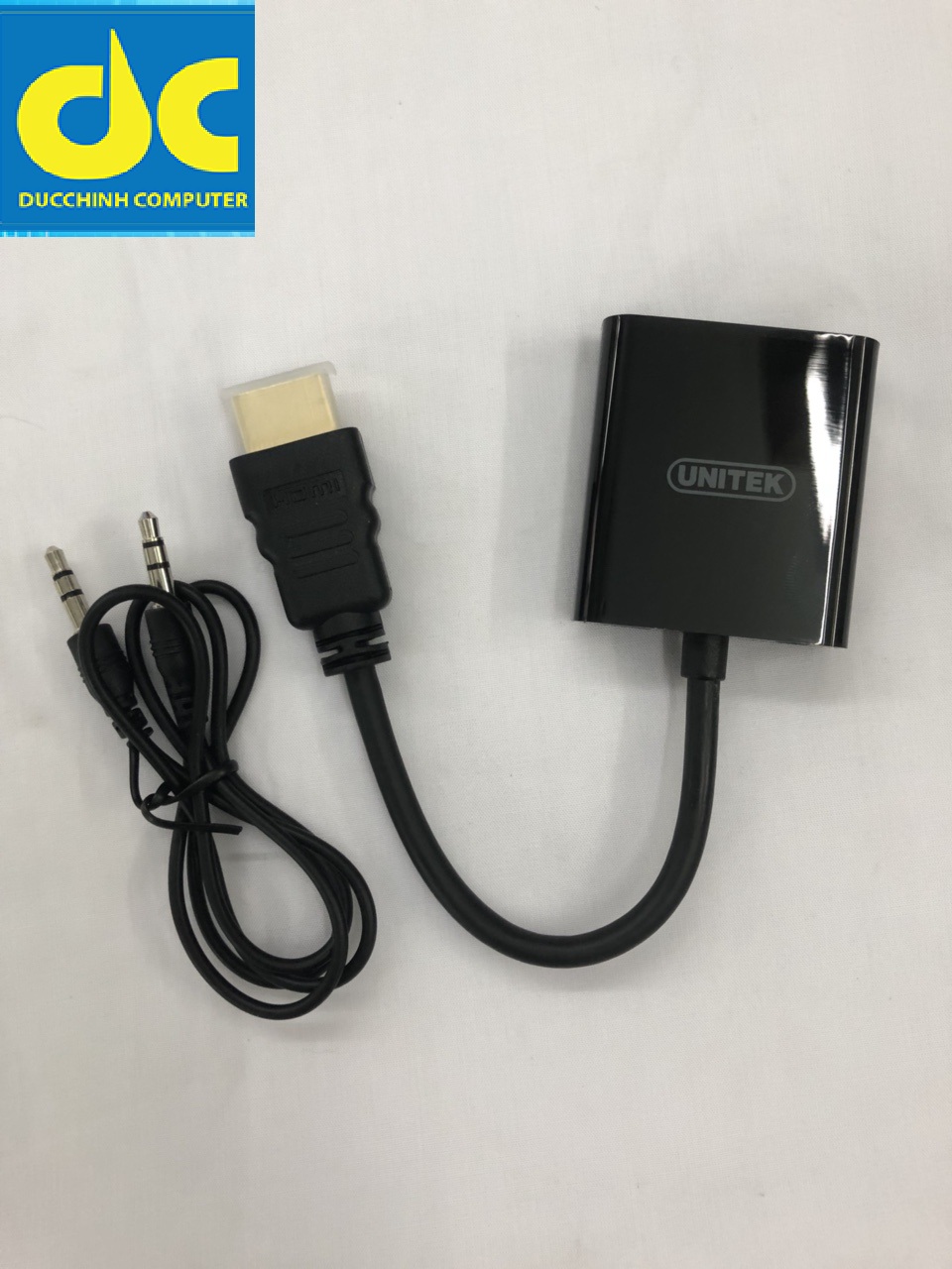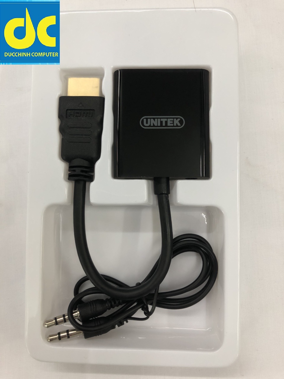 Cáp HDMI to VGA Unitek Y-6333 có hỗ trợ nguồn và âm thanh Chính hãng