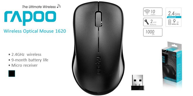 Chuột Rapoo 1620 – MÀU ĐEN với công nghệ tiết kiệm năng lượng, chế độ ngủ tự động và công tắc nguồn mới nhất của Rapoo giúp tiết kiệm tối đa năng lượng và tăng thời lượng pin sử dụng lên đến 9 tháng.
