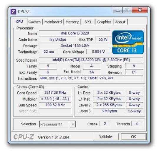 Thương hiệu: Intel Loại: Cpu Core i3 3220