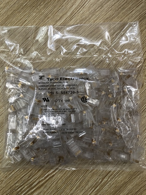 Đầu bấm, Hạt mạng AMP dùng cho cáp mạng UTP/ FTP 5-1479185-3 hàng chuyên dụng chạy mạng butrom dàn nét , thi công công trình dự án tiêu chuẩn mạng 100/1000
