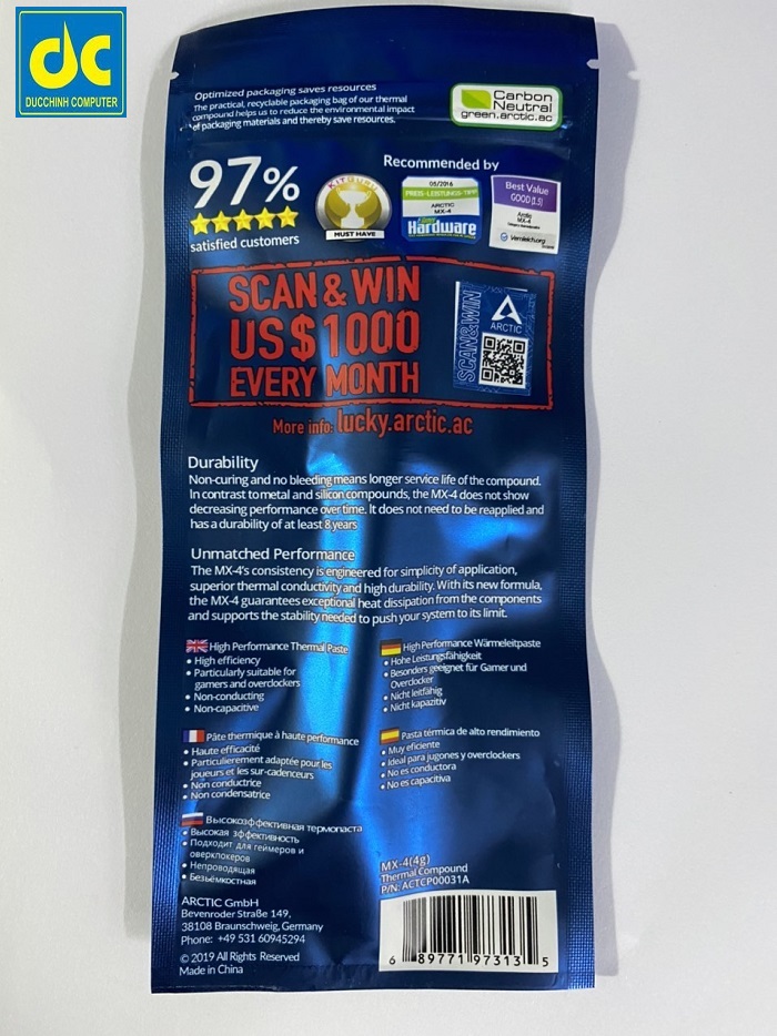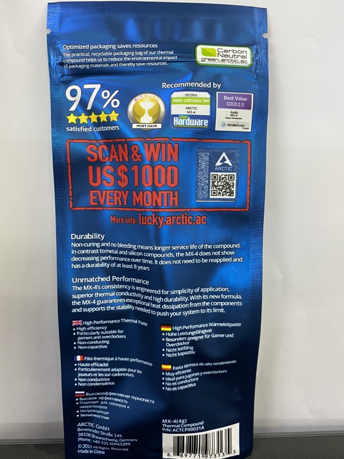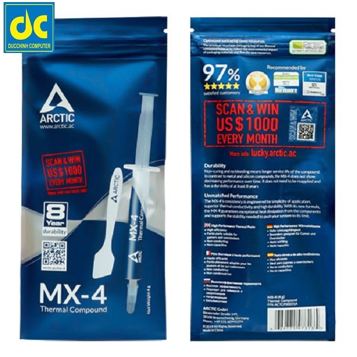 Arctic MX 4 model mới nhất hiện nay. Bạn có muốn máy tính bạn luôn đạt hiệu năng tối đa và luôn mát mẻ không? Dòng sản phẩm được bạn rất nhiều Pc gamer tại Swizerdland Arctic MX 4 với size 2gram dùng được 6 lần. 4gram sử dụng được 6 lần, 8gram sử dụng được 12 lần và 20g sử dụng được 25 lần. Arctic Mx 4 có độ dẫn nhiệt lên đến 8.5w/mk.