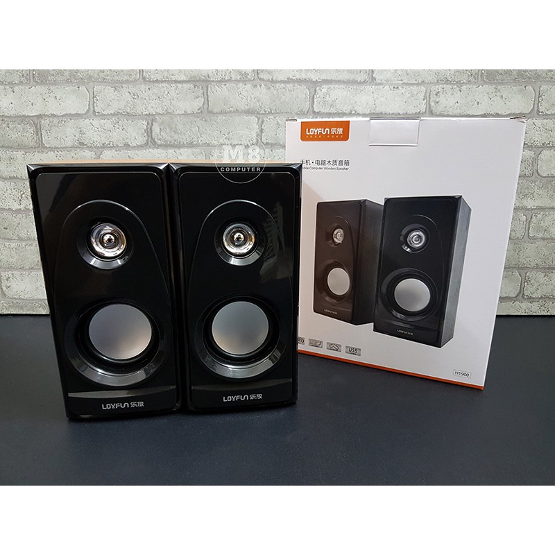 Loa 2.0 mini LOYFUN H1900 Kiểu dáng sang trọng, Hiện đại, Bạn có thể đặt loa theo nhiều góc nghiêng khác nhau, Bạn có thể dễ dàng kết nối với Laptop, PC với Jack cắm chuẩn 3.5 và cổng kết nối USB, Âm thanh trong trẻo, Bass mạnh, Cho bạn thoải mái thả hôn vào âm nhạc.