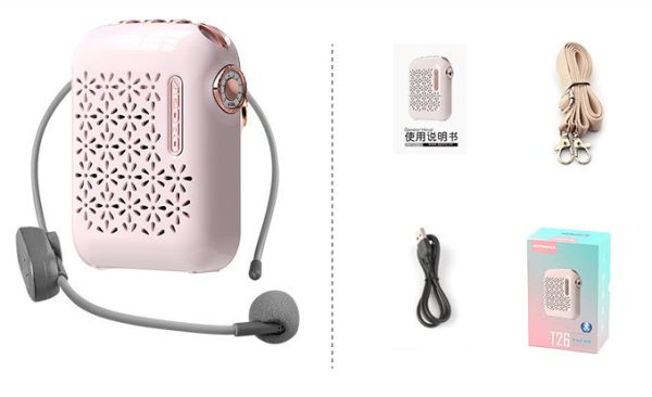 giảng dạy hoặc các hướng dẫn viên du lịch. T26 2.4G được đánh giá cao vì khả năng nhỏ gọn tiện lợi của máy khi các kết nối đều sử dụng không dây. Thiết kế kích thước 101x135x37mm cùng ngoại hình khắc họa tiết như bông hoa rất đẹp và bắt mắt cho bạn mang máy theo bên mình như một món đồ trang sức.